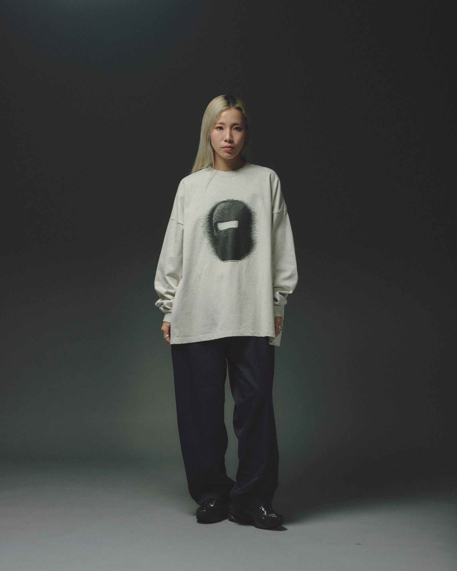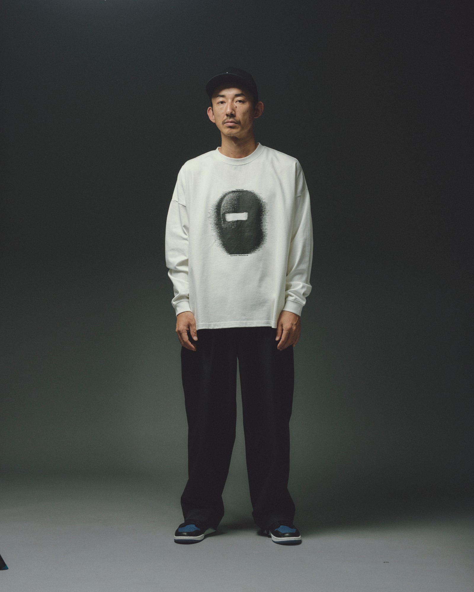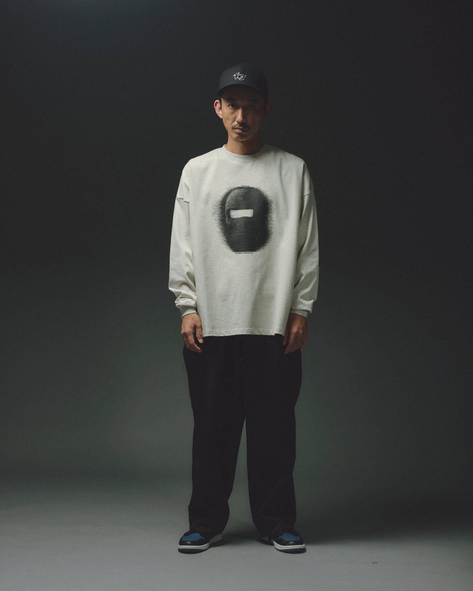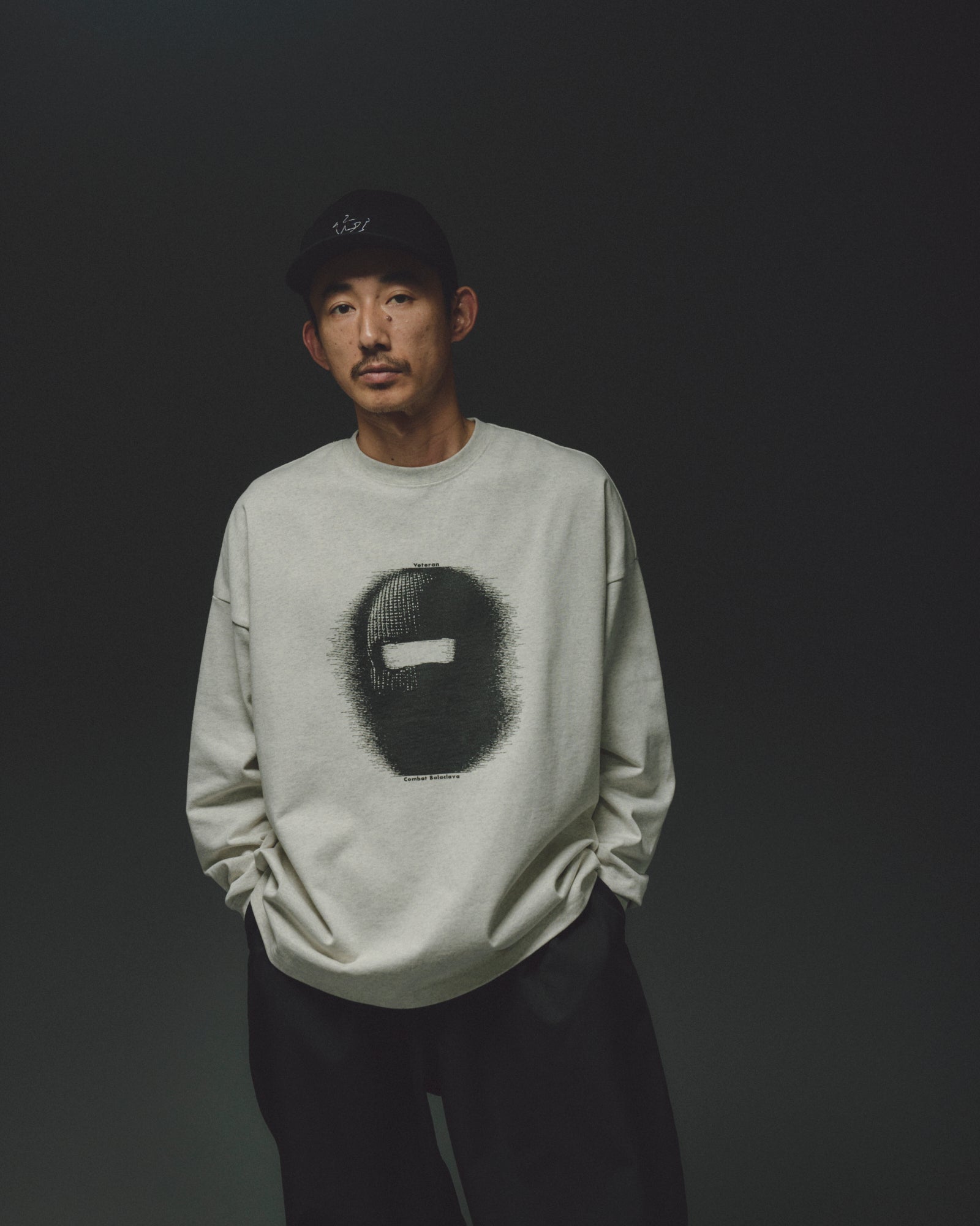 ゆったりしたBOXシルエットのロンTEE。 オリジナルのTシャツBODYは、縮みや斜行や抗ピリングを防ぐ機能があり、さらっとした表面感に目の詰まったしっかりとした天竺生地。 フロントには、今シーズンの【戦う】というテーマに合わせた”バラクラバ”のグラフィックをハーフトーンで存在感を中和させたプリント。左袖のアームホール辺りに”VET VET VET”の今シーズンを象徴するグラフィックで、3回繰り返すことでその言葉を強調させていた戦闘用語を表現しております。