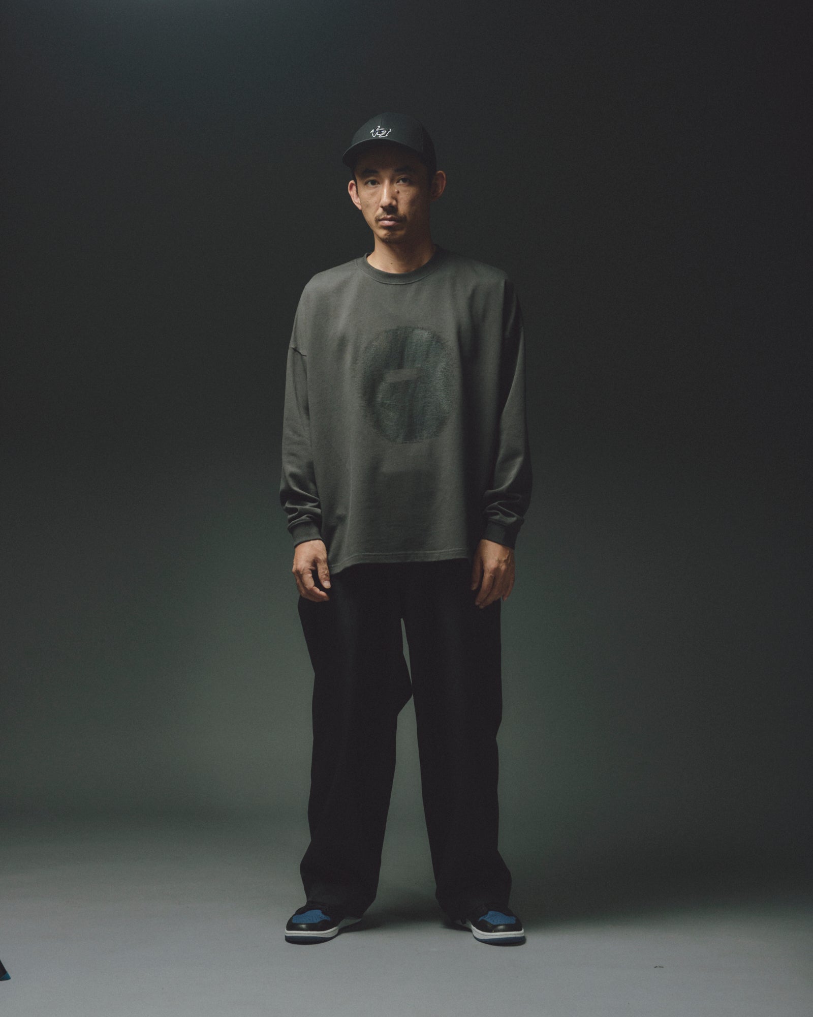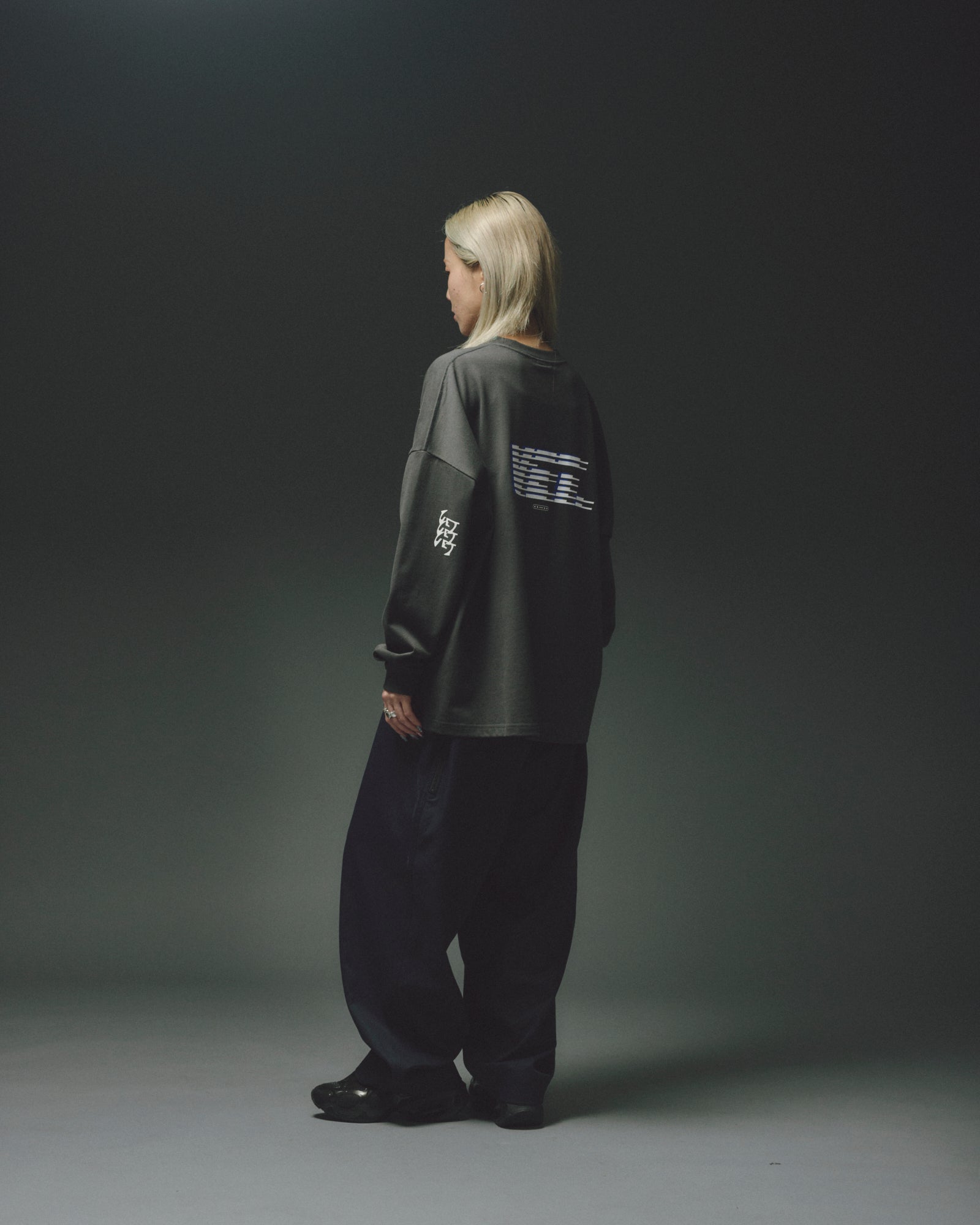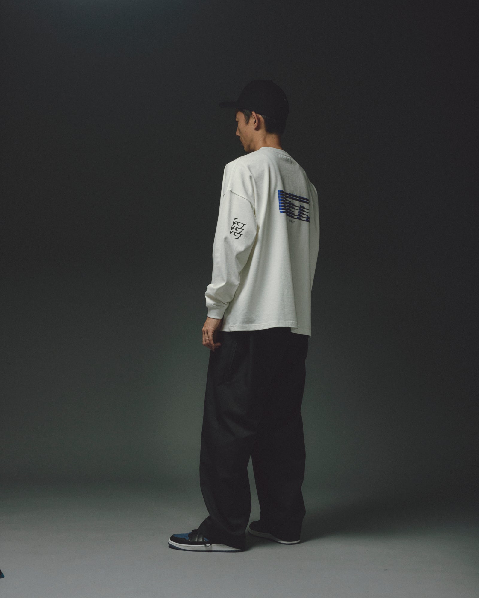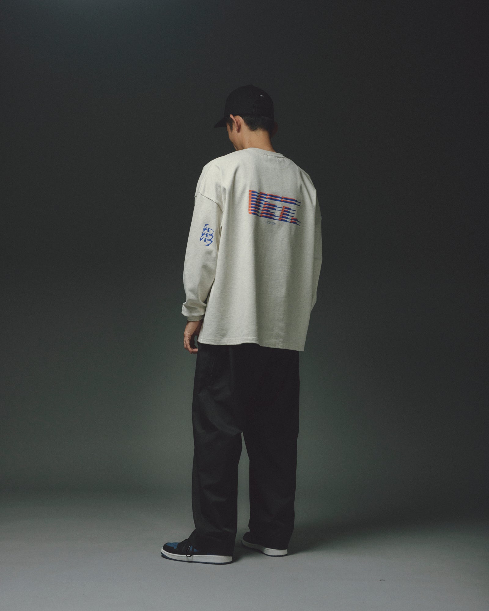 ゆったりしたBOXシルエットのロンTEE。 オリジナルのTシャツBODYは、縮みや斜行や抗ピリングを防ぐ機能があり、さらっとした表面感に目の詰まったしっかりとした天竺生地。 フロントには、今シーズンの【戦う】というテーマに合わせた”バラクラバ”のグラフィックをハーフトーンで存在感を中和させたプリント。左袖のアームホール辺りに”VET VET VET”の今シーズンを象徴するグラフィックで、3回繰り返すことでその言葉を強調させていた戦闘用語を表現しております。
