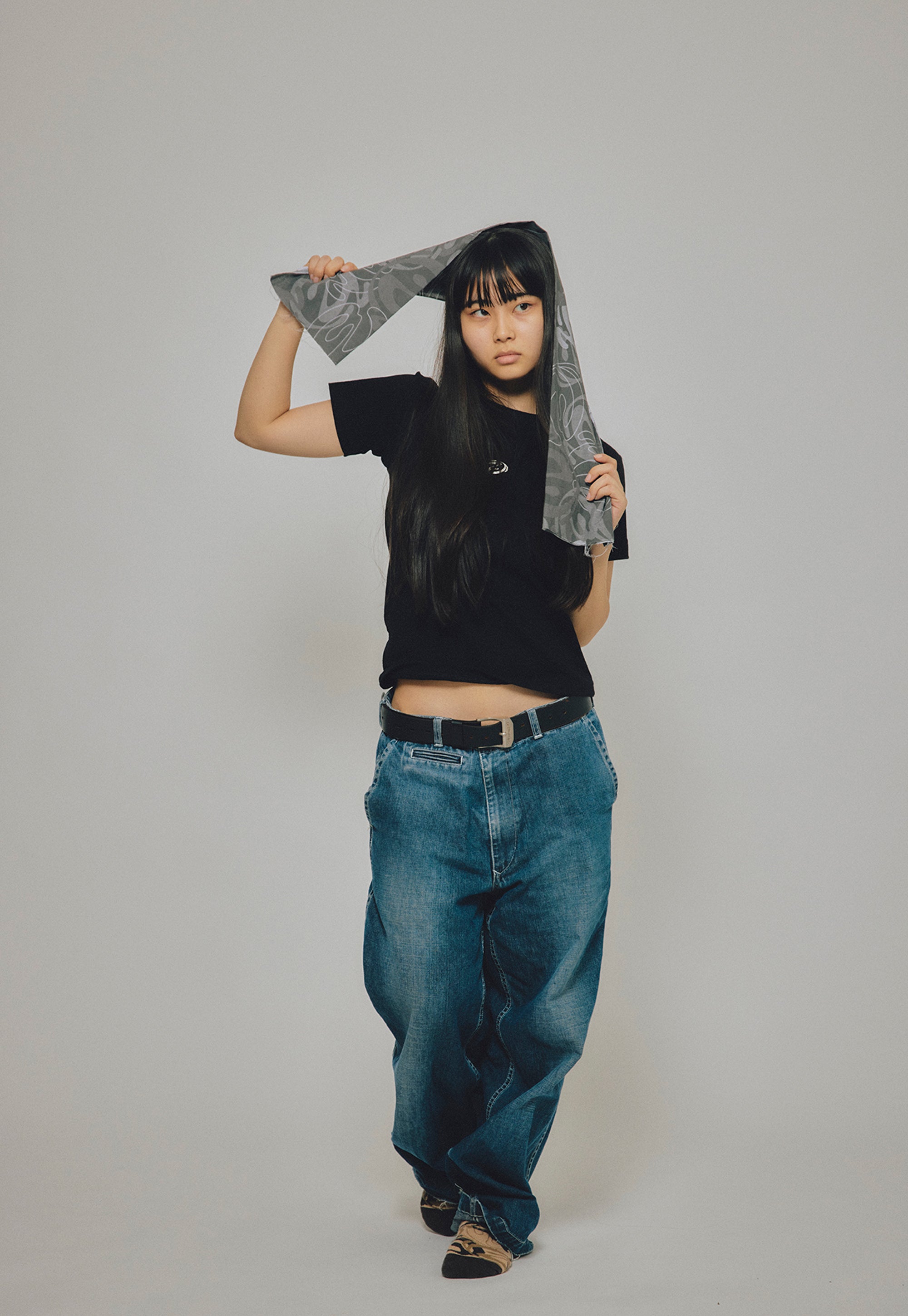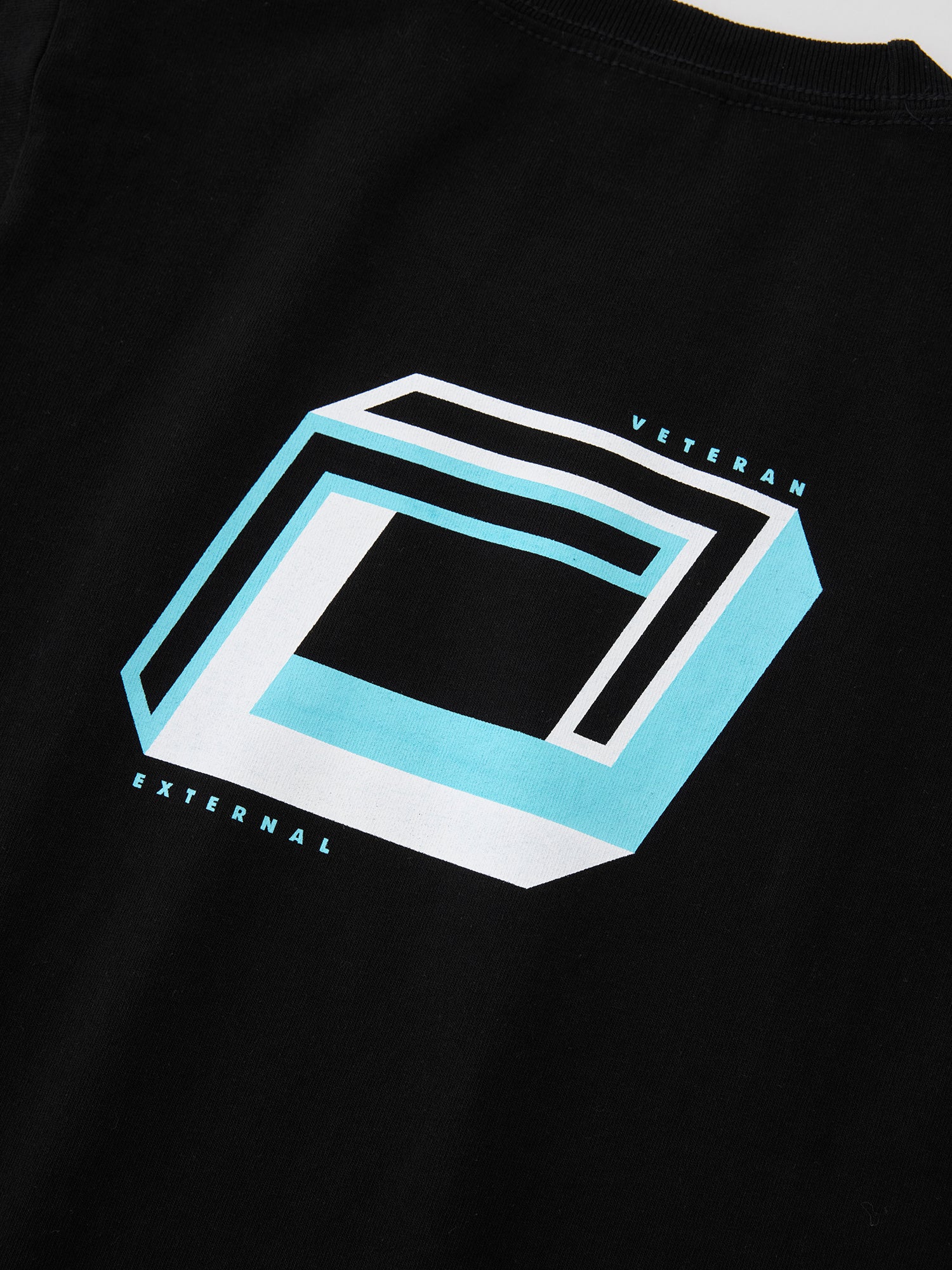 胸に混ざり合うを意味したBLENDアイコンのプリントが入り、背中にEXTERNAL(外からの)というテーマで、色んな要素を取り入れ、繋がり合い、一つの物が出来上がり裏も面もない表現を”メビウスの輪”をイメージしたプリント。オープンエンドの糸はふっくらとしており、ボリュームがある一方で、ドライでザックリとした風合いのTシャツ。