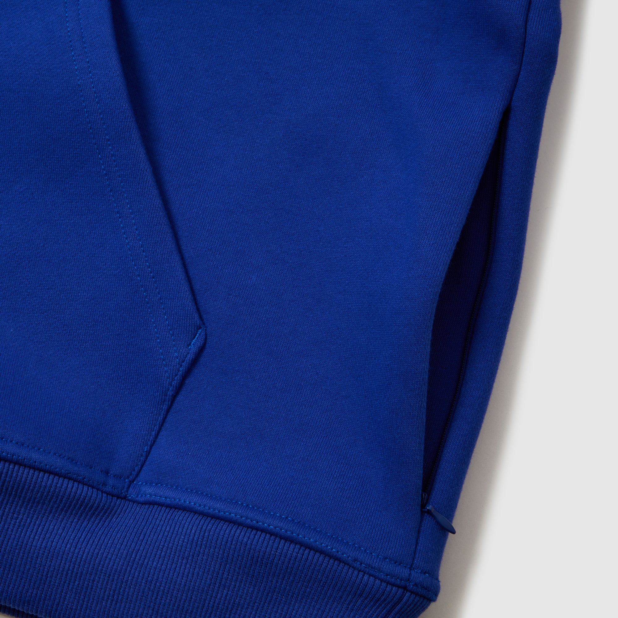 表面がきめ細かいコットン裏毛で、裏面がフラットな表面感のポリエステル素材になります。見た目のカジュアル感に対して、軽くて着用した時の肌触りが抜群なアイテム。