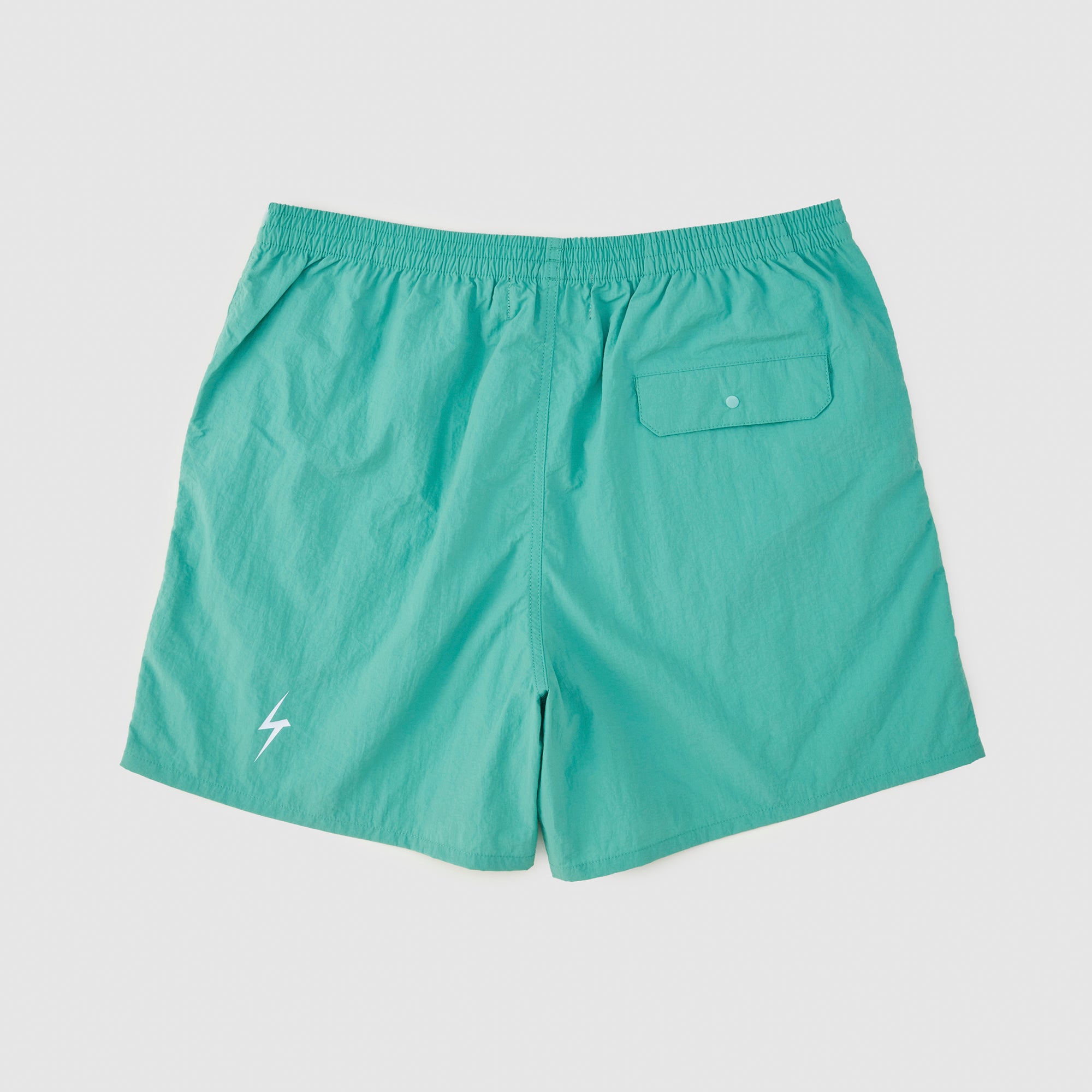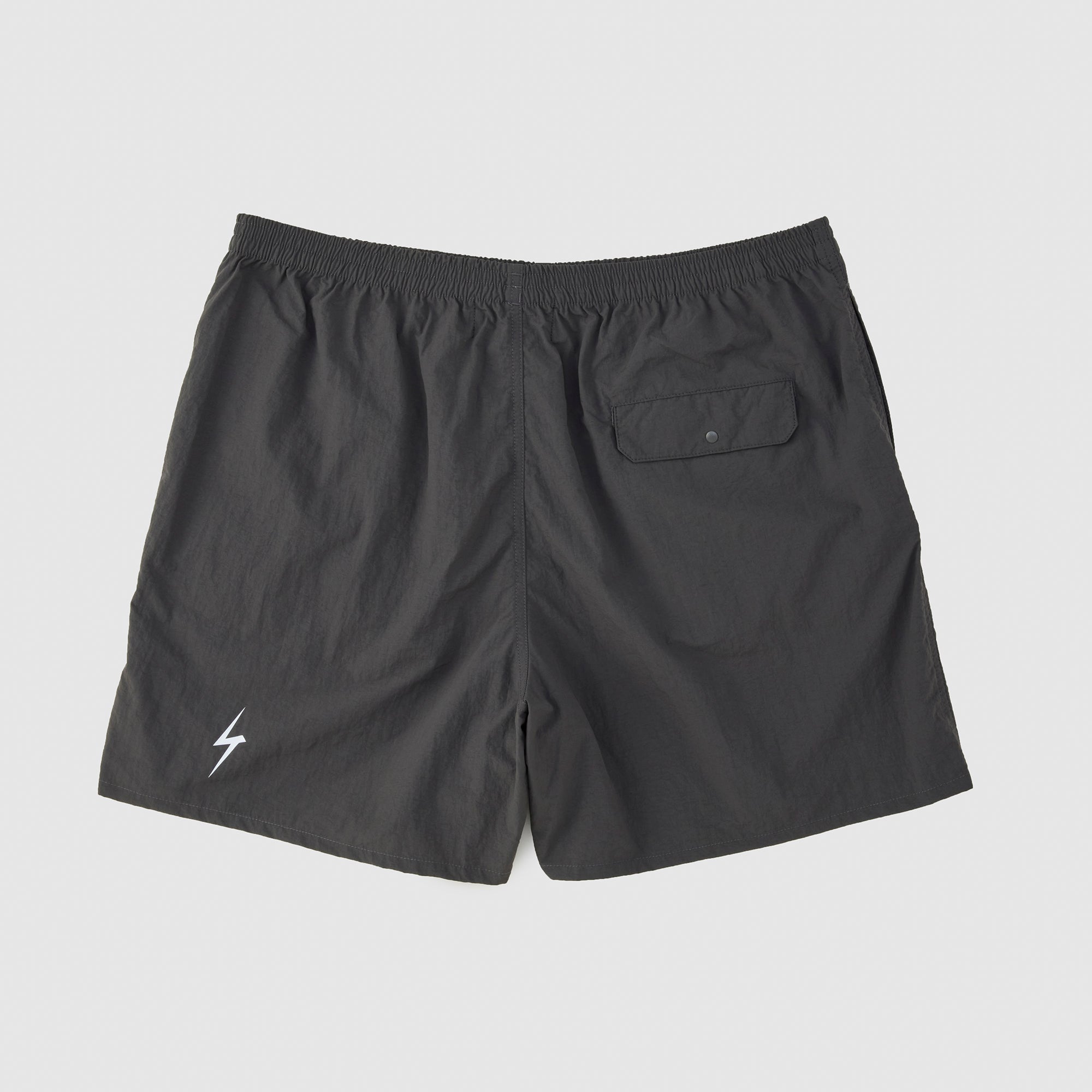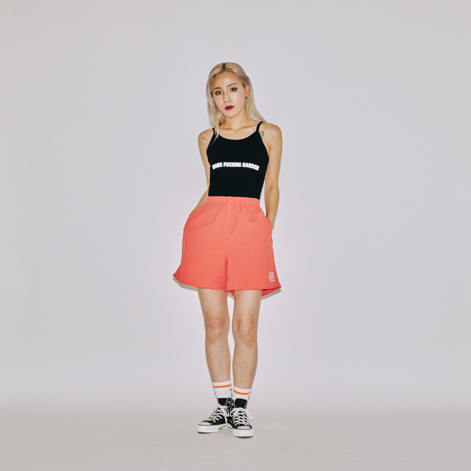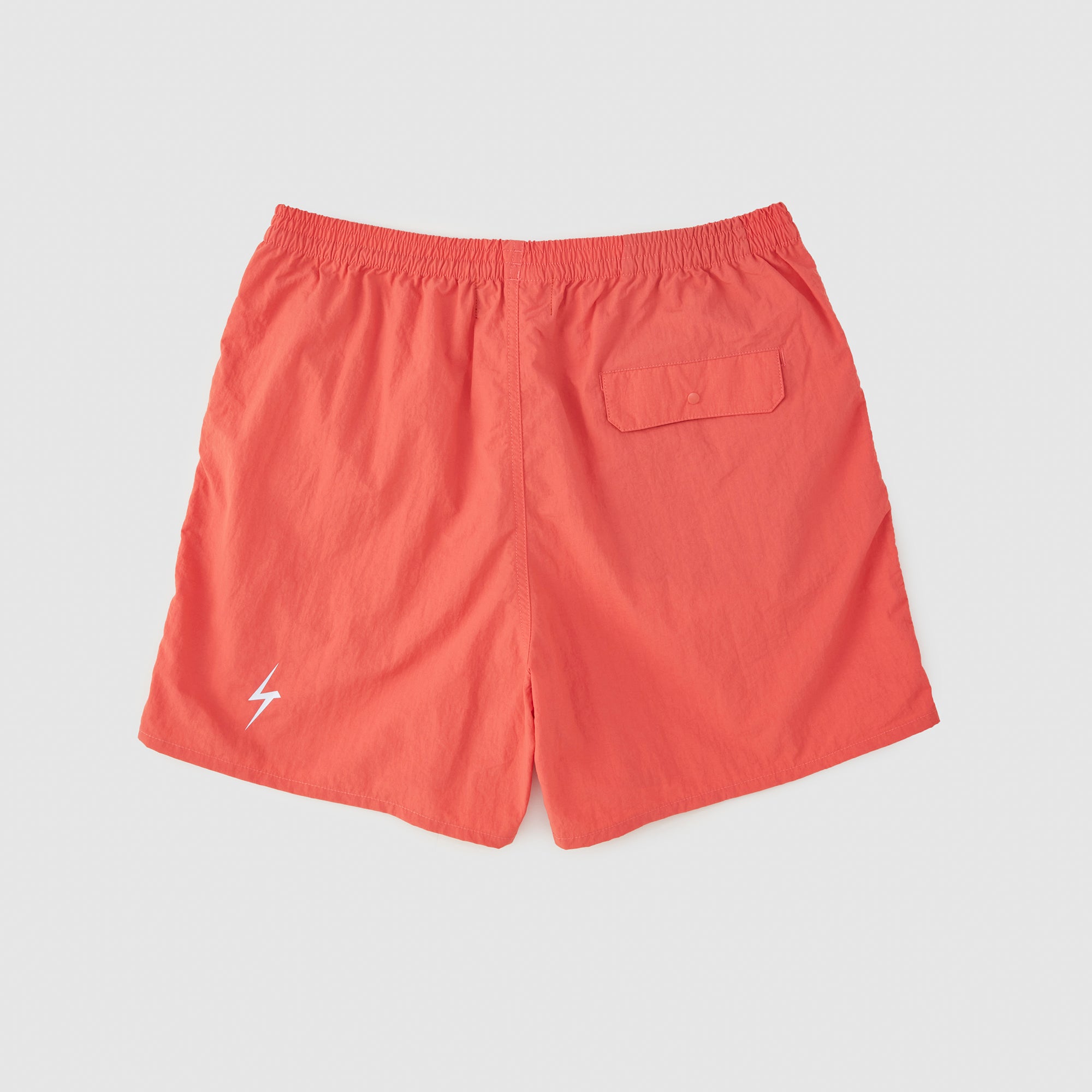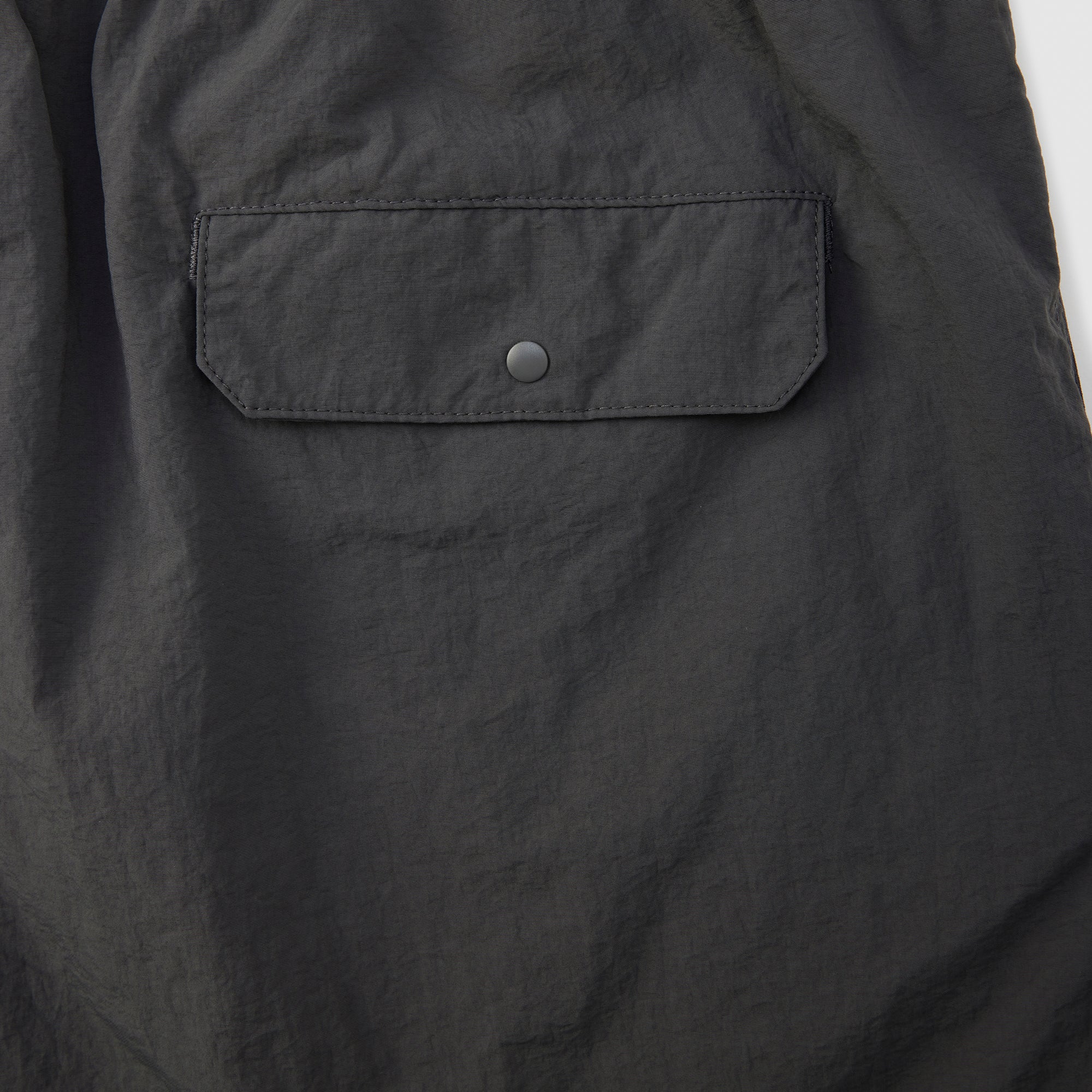 鮮やかな色使いの、撥水加工を施したナイロン100%生地の街穿きや水辺での使用も可能な、多目的ナイロンショーツ。右ポケットの中側にキーホルダーが付けられるゴム紐付きで、ポケットの内側はメッシュ生地を使用して水抜き仕様になっています。ウエストは紐で調節できます。