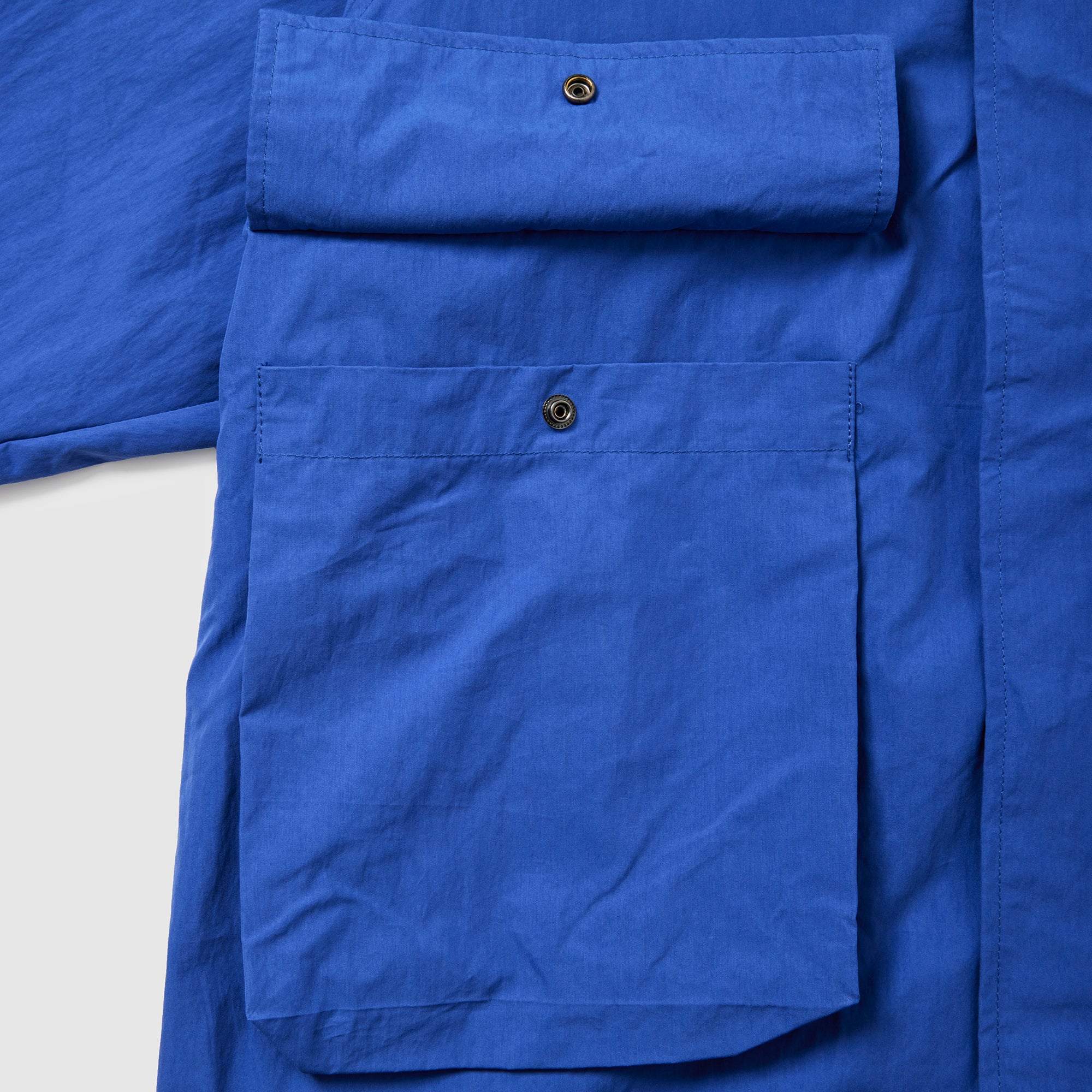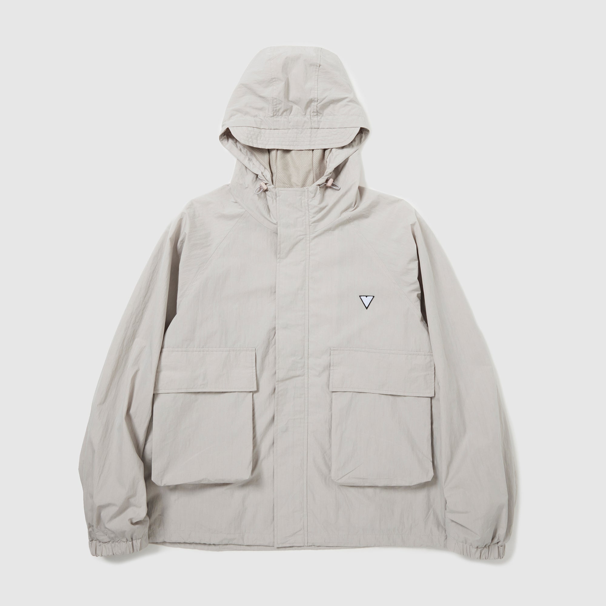 大きなフラップポケットが特徴のナイロンコットンのマウンテンパーカー。