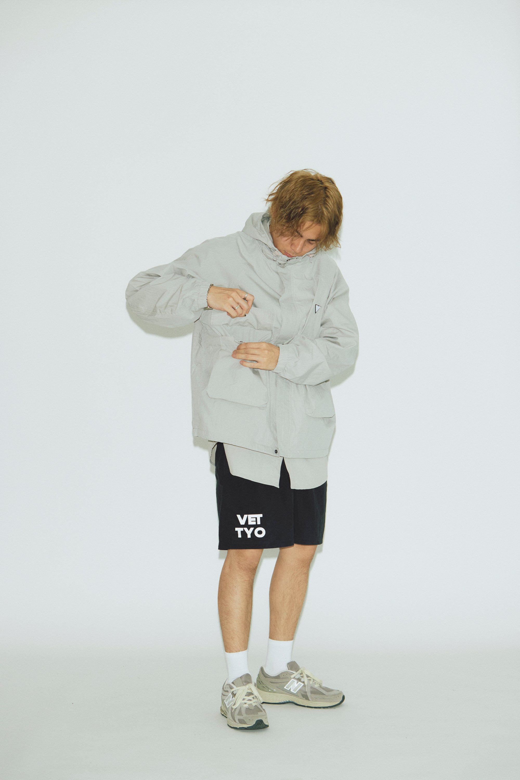 フードには雨よけのツバが付いており、フード、裾、袖口はサイズが調節できる仕様になっております。
