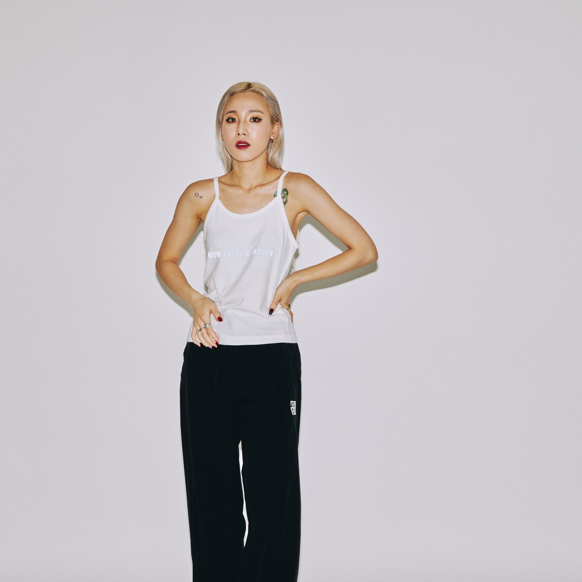 胸に「「WORK FUCKING HARDER(もっと頑張れ」のプリントが入り、背中に「VTカミナリ」のリフレクタープリントが入っています。体を包み込む程よいフィット感で美しいシルエットを叶える一枚。