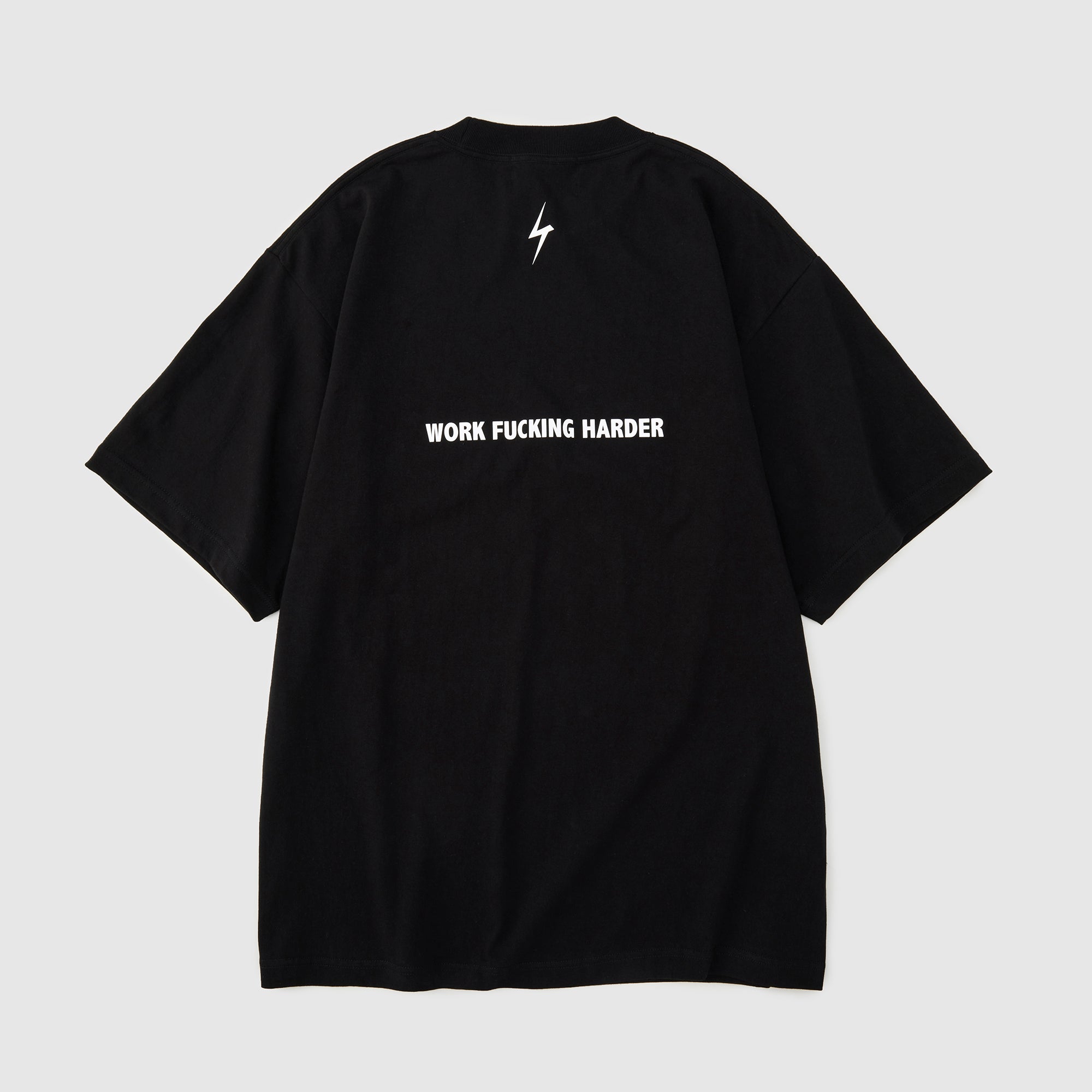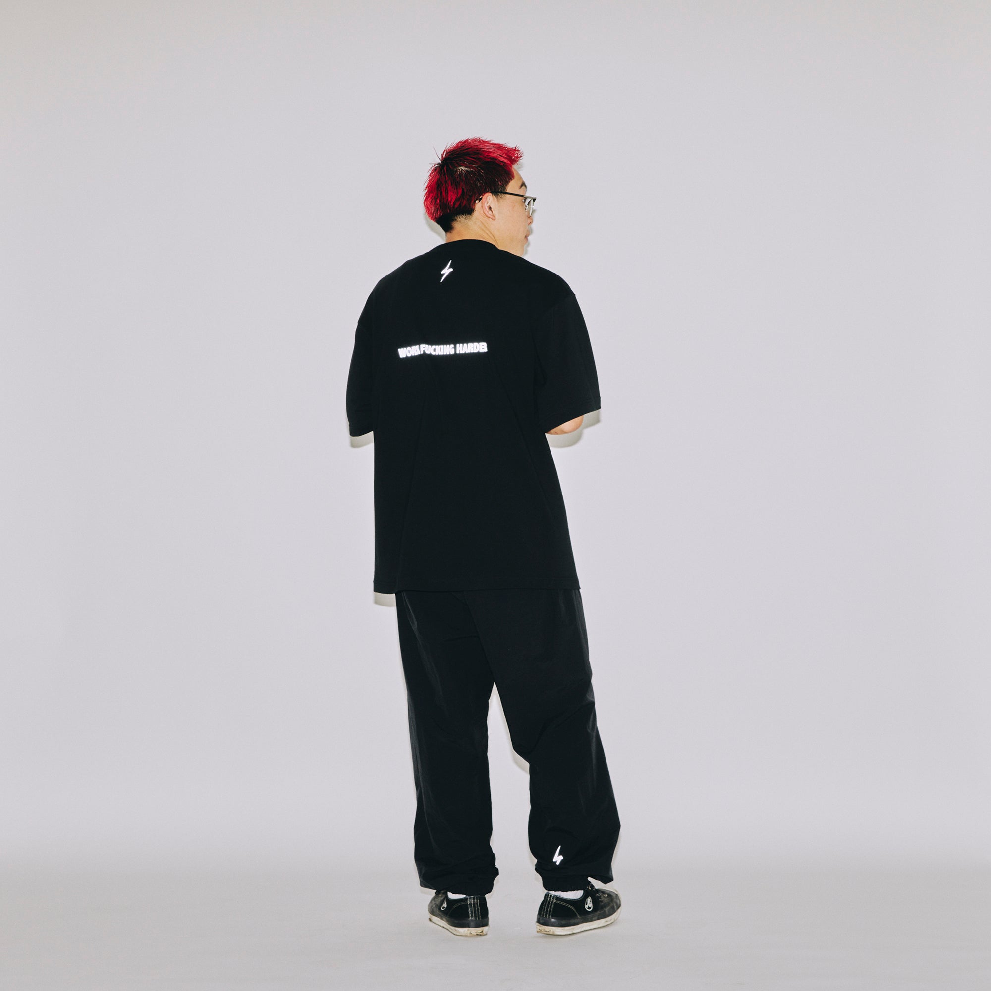 背中には、WORK FUCKING HARDER」のロゴと「VTカミナリ」がリフレクタープリントになっております。