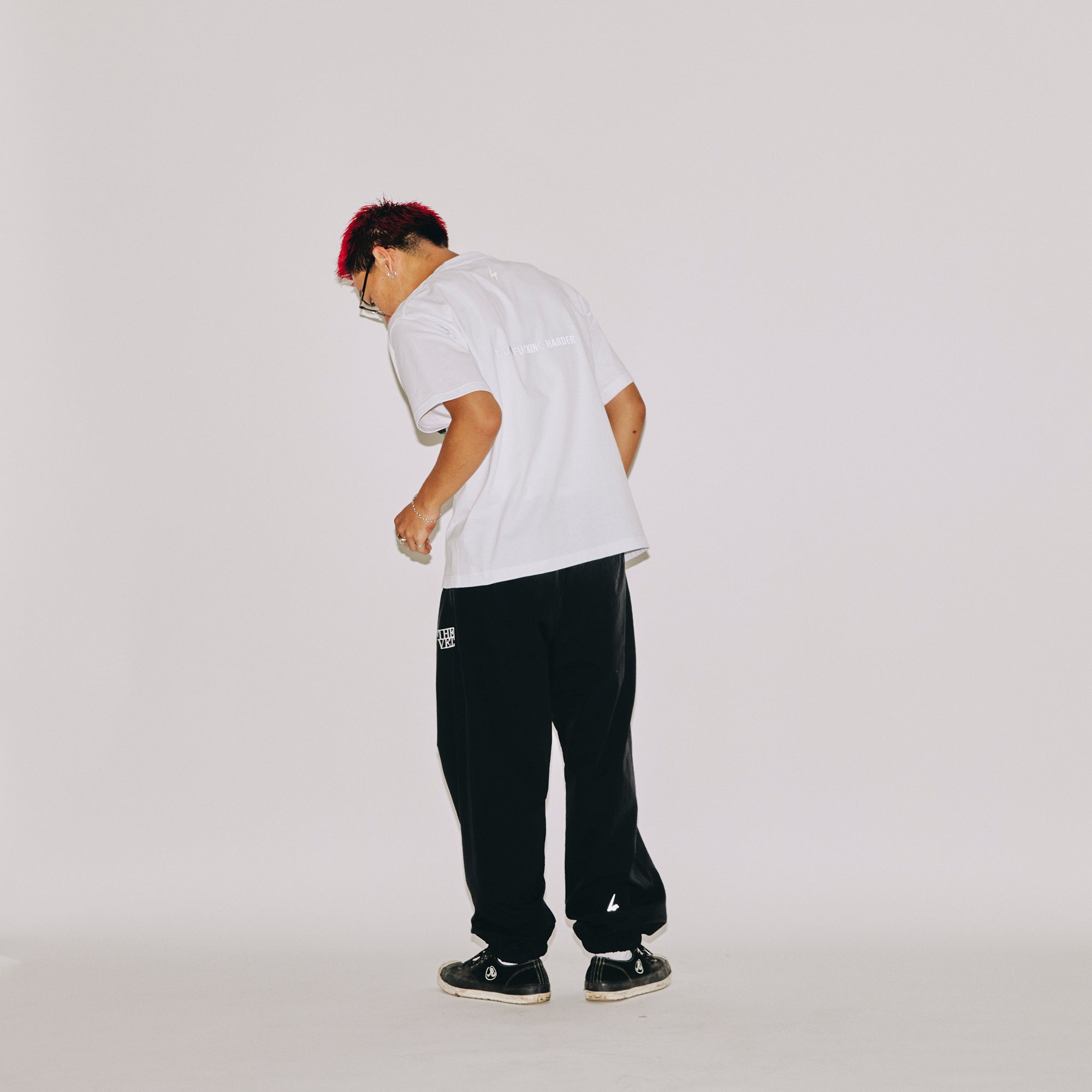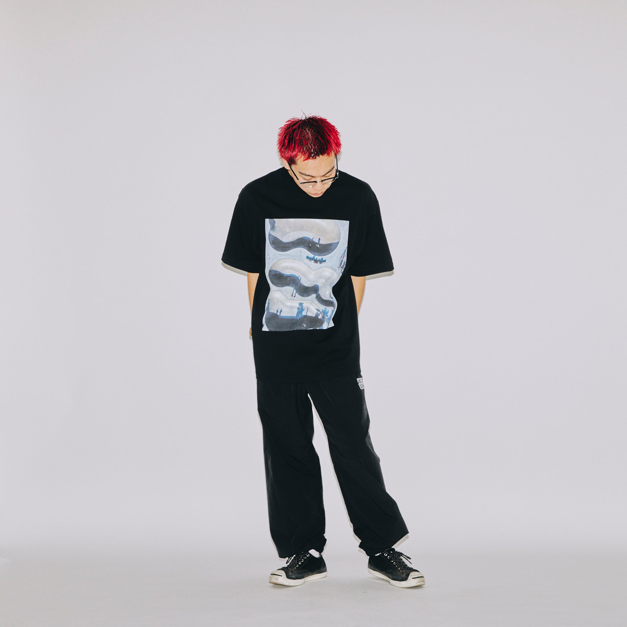 TシャツBODYは韓国の生地を使用し、さらっとした表面感に目の詰まったしっかりとした天竺生地。ドロップショルダーでボックスシルエット。
